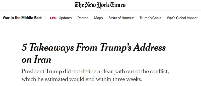 This is what a senior reporter for CNN, Stephen Collinson, wrote in his analysis piece after US President Donald Trump’s first address to Americans on the US-Israel war on Iran.