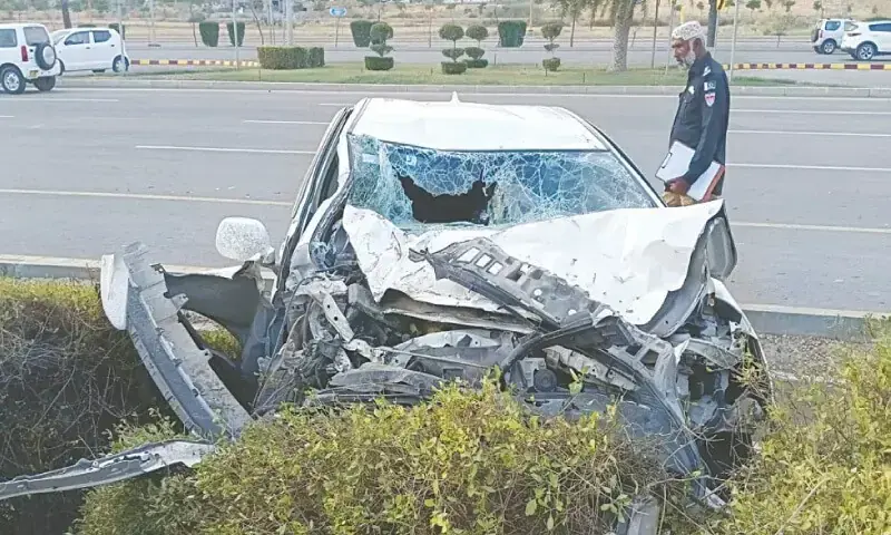 Police and rescue sources told Dawn that the crash was so severe that rescue workers spent over an hour cutting through the vehicle’s body to retrieve the charred bodies and the injured.
