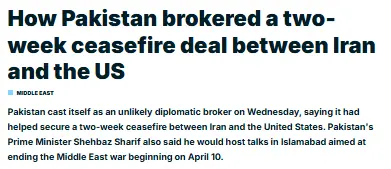 This is what The Independent wrote in its analysis after Islamabad brokered a ceasefire between the United States and Iran in the early morning hours of Wednesday.