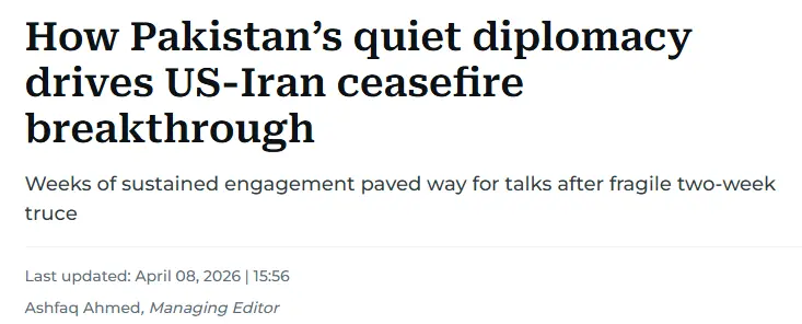 It added that while challenges still remain, for now, “the ceasefire marks a significant diplomatic win for Islamabad, underscoring how sustained, quiet engagement can influence the trajectory of a fast-moving and high-stakes conflict, even as the human and economic costs of the war continue to mount”.