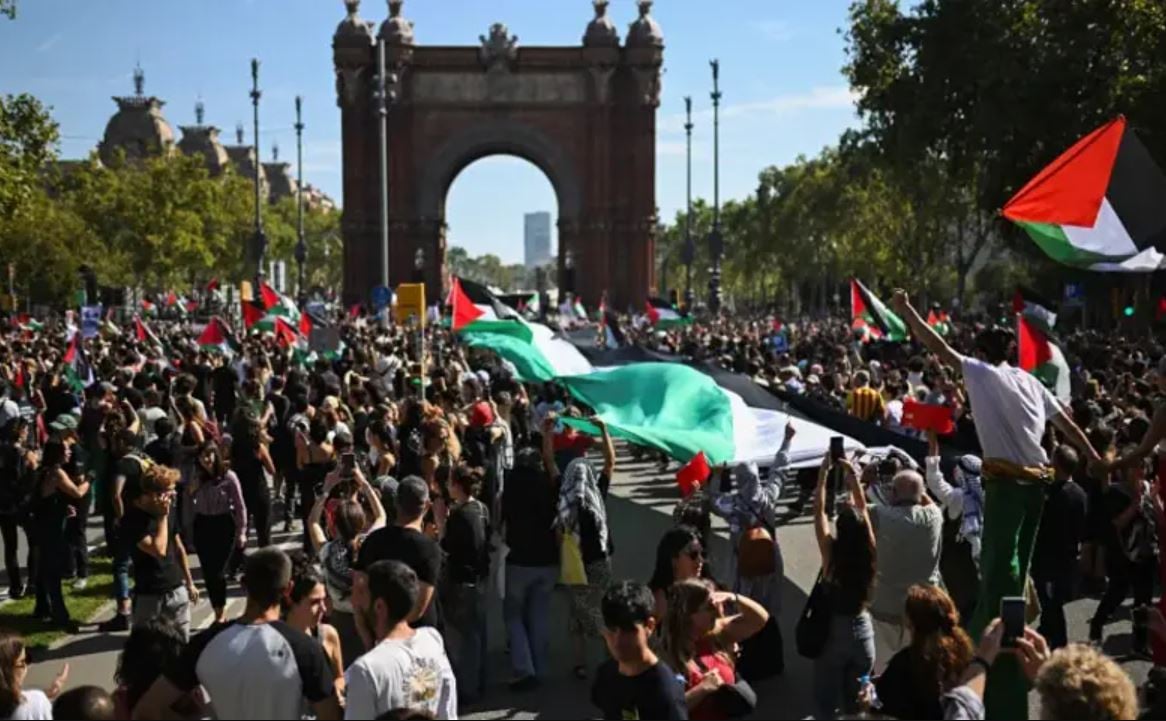 یورپ کے کئی بڑے شہروں میں اسرائیلی مظالم کے خلاف ہزاروں افراد سڑکوں پر نکل آئے۔ برطانیہ، اٹلی، اسپین، پرتگال اور آئرلینڈ سمیت متعدد ممالک میں بڑے پیمانے پر احتجاجی ریلیاں نکالی گئیں۔ الجزیرہ کے مطابق بارسلونا، میڈرڈ، روم اور لزبن میں مظاہرے اس وقت شدت اختیار کر گئے جب اسرائیلی افواج نے غزہ کے لیے امداد لے جانے والی گلوبل صمود فلوٹیلا کو روک کر 450 سے زائد کارکنوں کو گرفتار کر لیا، جن میں 40 ہسپانوی شہری بھی شامل ہیں۔ اٹلی میں 3 اکتوبر کو ملک گیر ہڑتال کے دوران 20 لاکھ سے زائد افراد نے فلسطینی عوام سے یکجہتی کا اظہار کیا۔ اسپین میں عوامی حمایت میں مسلسل اضافہ ہو رہا ہے، اور اسپین کے وزیراعظم پیڈرو سانچیز نے اسرائیل کے مظالم کو "نسل کشی" قرار دیتے ہوئے اسرائیلی ٹیموں پر بین الاقوامی مقابلوں سے پابندی کا مطالبہ کیا۔ بارسلونا میں پولیس کے مطابق 70 ہزار سے زائد افراد احتجاج میں شریک ہوئے۔ مظاہرین نے ہاتھوں میں فلسطینی پرچم اور بینرز اٹھا رکھے تھے جن پر لکھا تھا: "غزہ مجھے دکھ دیتا ہے", "نسل کشی بند کرو", اور "فلوٹیلا کو نہ روکو"۔ روم میں بھی تین فلسطینی تنظیموں، مقامی یونینز اور طلبہ کی جانب سے مارچ کیا گیا، جس میں ہزاروں افراد شریک ہوئے۔ دوسری جانب لندن میں ٹرافلگر اسکوائر پر بڑے احتجاج کے دوران پولیس نے کم از کم 175 مظاہرین کو گرفتار کر لیا۔ پولیس کے مطابق یہ مظاہرہ دراصل فلسطین ایکشن گروپ پر انسدادِ دہشت گردی قوانین کے تحت پابندی کے خلاف کیا جا رہا تھا۔ ڈبلن اور ایتھنز میں بھی اسرائیلی جارحیت کے خلاف بڑے پیمانے پر احتجاج ہوئے۔ آئرش دارالحکومت میں ہزاروں افراد نے اسرائیل پر پابندیاں عائد کرنے کا مطالبہ کیا، جبکہ یونان میں مظاہرین نے غزہ میں دو سال سے جاری تباہی کے خاتمے کا مطالبہ کیا۔ مظاہروں کی شدت اس وقت بڑھی جب حماس نے امریکی صدر ڈونلڈ ٹرمپ کے امن منصوبے کے بعض نکات تسلیم کرتے ہوئے دو سالہ جنگ کے خاتمے کی خواہش ظاہر کی، جس میں اب تک 66 ہزار سے زائد فلسطینی شہید ہو چکے ہیں۔