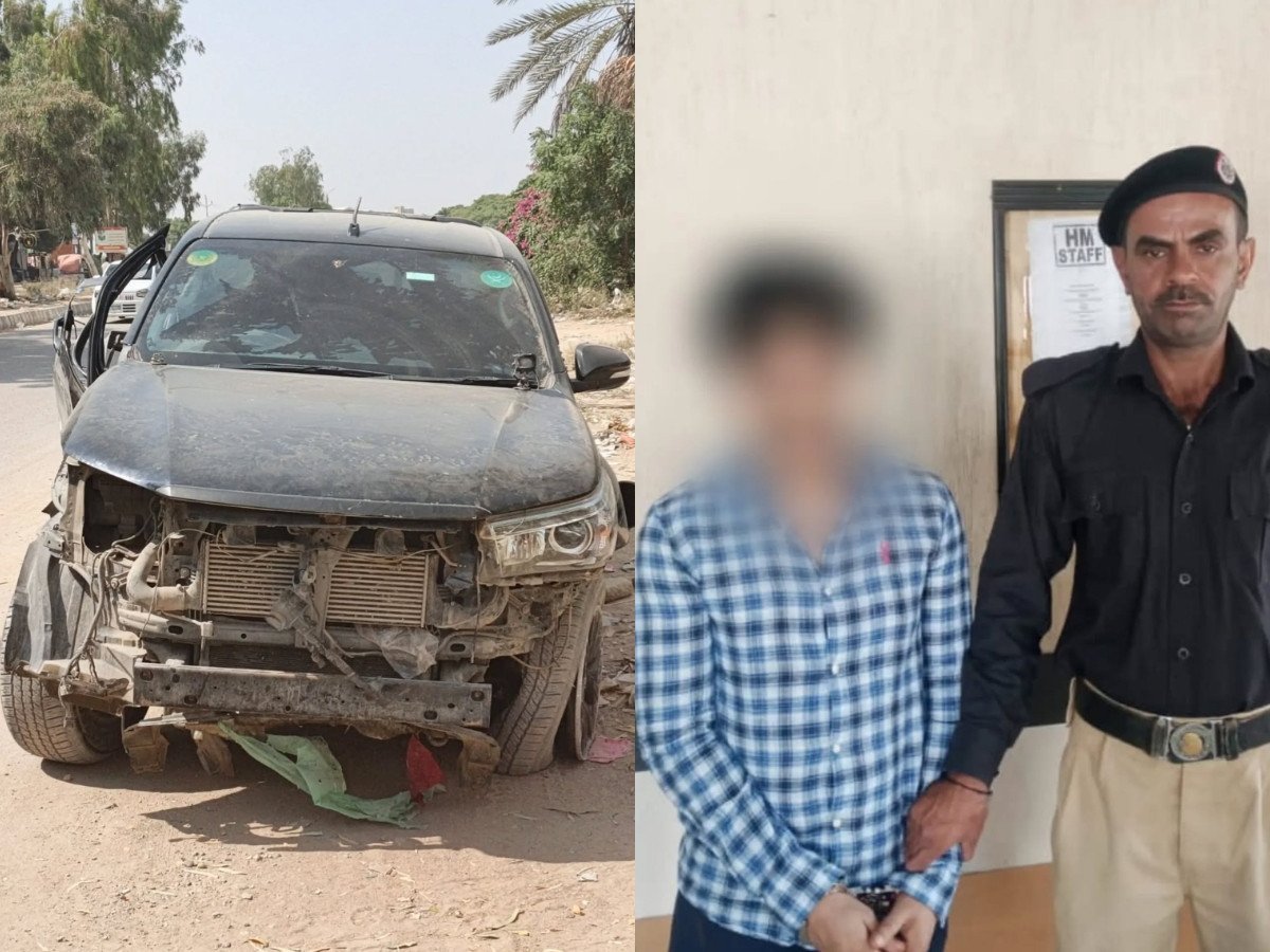 ملیر راشدی گوٹھ میں ڈبل کیبن گاڑی پر سوار نشے میں دھت شخص نے موٹر سائیکل سواروں پر گاڑی چڑھادی۔ تفصیلات کے مطابق ملیر کینٹ تھانے کے علاقے راشدی گوٹھ میں نشے کی حالت میں گاڑی چلانے والے شخص عظمت شاہ نے تیز رفتاری سے گاڑی چلاتے ہوئے دو سے تین موٹرسائیکلوں اور ایک لوڈر رکشہ کو ہٹ کیا اور گاڑی فٹ پاتھ پر چڑھادی۔ پولیس نے فوری کارروائی کرتے ہوئے ملزم عظمت علی شاہ کو ڈبل کیبن ریوو گاڑی سمیت گرفتار کرلیا، گرفتار ملزم کے قبضے سے 3 تین کین اسٹرونگ بیئر بھی برآمد کی گیا۔ ملیرکینٹ پولیس کے مطابق واقعہ کے 2 مقدمات درج کرلیے گئے ہیں، ایک مقدمہ غفلت لاپرواہی سے ڈرائیونگ دوسرا شراب کے کین ملنے پر درج کیا گیا۔ ڈرائیور عظمت شاہ نشے میں دھت تھا جس کے پاس لائسنس بھی نہیں تھا۔ حادثے میں گاڑی کو بھی شدید نقصان پہنچا جبکہ ڈرائیور بھی زخمی ہوا۔ شہریوں کی جانب سے ڈرائیور کو بدترین تشدد کا نشانہ بنایا گیا۔ گاڑی کی تلاشی لینے پرسیٹ کے نیچے سے تین بئیرکین ملے، ایک بیئر کا کین آدھا استعمال شدہ تھا۔ عوام کے تشدد کی وجہ سے ڈرائیور کے جسم پرمتعدد چوٹیں آئیں، ڈرائیور کو گرفتار کرکے تھانے منتقل کردیا گیا ہے۔