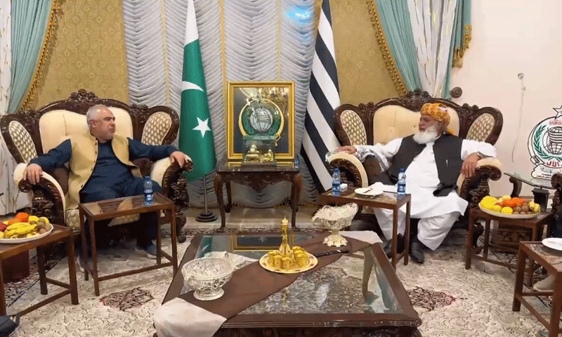 پی ٹی آئی وفد نے امیر جے یو آئی مولانا فضل الرحمان کی رہائش گاہ اسلام آباد کا دورہ کیا جہاں رہنماؤں نے موجودہ ملکی سیاسی اور خطے کی صورتحال پر گفتگو کی۔