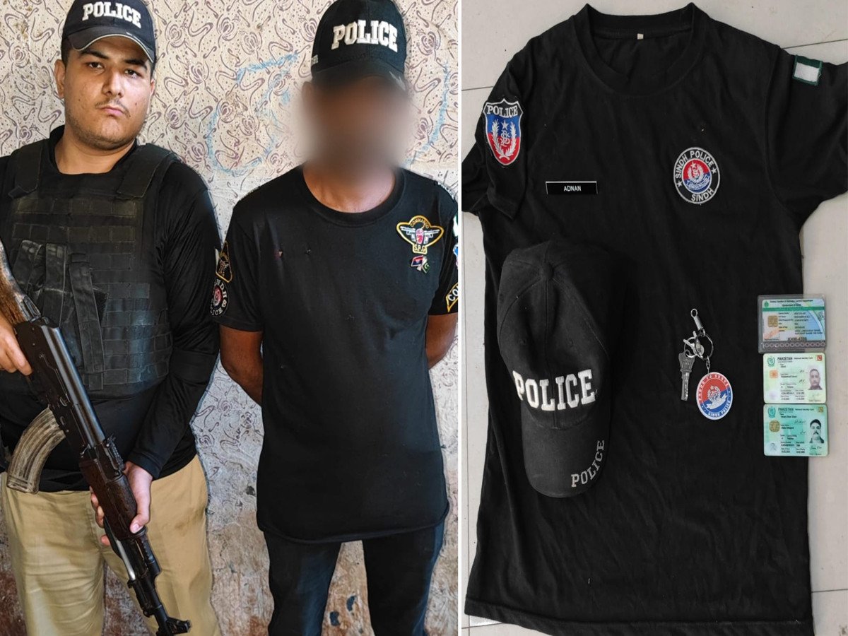 ترجمان ڈسٹرکٹ سٹی کے مطابق گرفتار جعلی پولیس اہلکار کی شناخت عدنان کے نام سے ہوئی ہے اور ان کے قبضے سے پولیس ٹی شرٹ، پولیس کیپ اور 2 بیگ سمیت دیگر سامان برآمد کرلیا گیا ہے۔