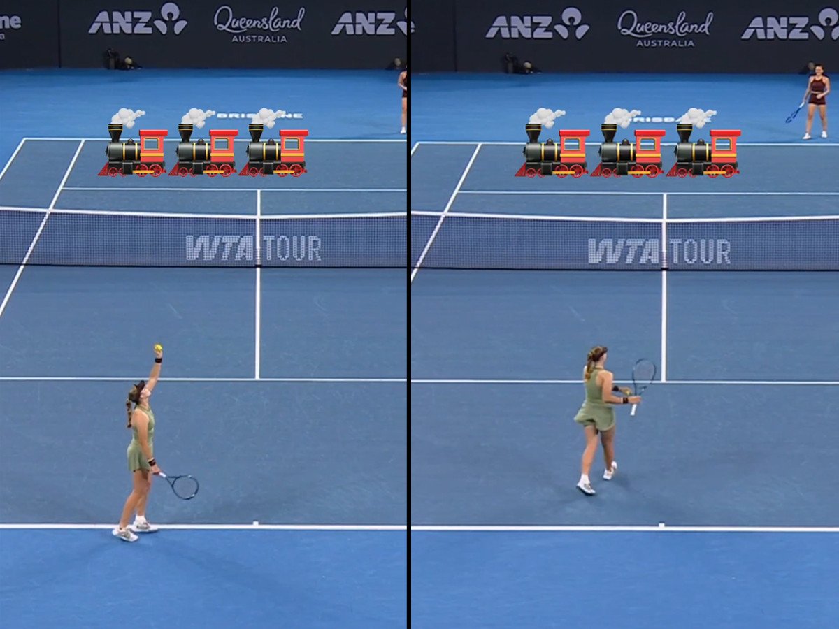 A train horn goes off right as Mirra Andreeva is about to serve to Marta Kostyuk in Brisbane.