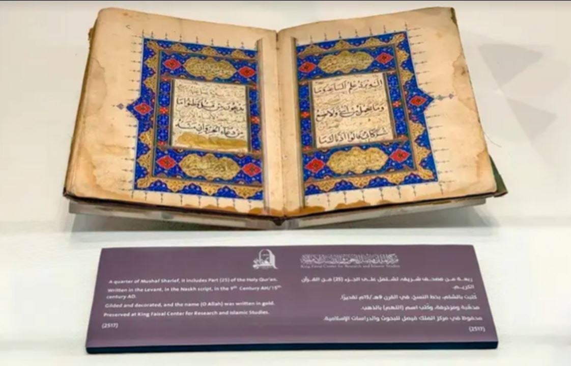 مکہ مکرمہ کے حراء ثقافتی محلہ میں واقع قرآن کریم میوزیم میں نویں صدی ہجری سے تعلق رکھنے والے قرآن مجید کے ایک نایاب پارے کو نمائش کے لیے پیش کر دیا گیا ہے۔
