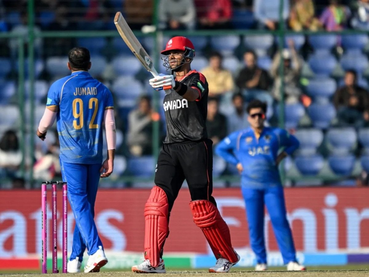 دہلی میں گروپ ڈی کی ٹیموں کے درمیان کھیلے گئے میچ میں کینیڈا نے یو اے ای ٹاس جیت کر پہلے بیٹنگ کرتے ہوئے 7 وکٹوں کے نقصان پر 150 رنز اسکور کیے۔