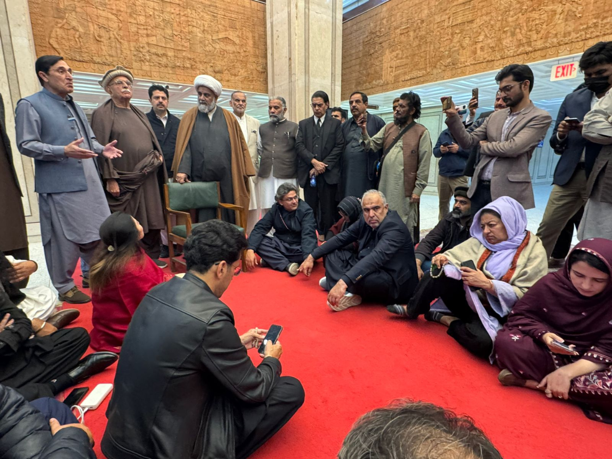 پارلیمنٹ ہاؤس کے اندر اپوزیشن کے متعدد رہنما موجود ہیں جن میں اپوزیشن لیڈر محمود خان اچکزئی، راجہ ناصر عباس اور بیرسٹر گوہر سمیت دیگر اراکین شامل ہیں۔ رہنماؤں کا کہنا ہے کہ وہ اپنے مطالبات کی منظوری تک احتجاج جاری رکھیں گے۔