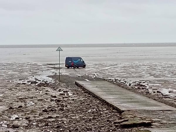 ایمازون ڈرائیور جی پی ایس کی رہنمائی سے فاؤلنیس آئی لینڈ تک جانا چاہ رہا تھا لیکن غلطی سے ایسیکس گریٹ ویکرنگ میں موجود بروم وے میں پھنس گیا اور وین فوراً ہی دلدل میں پھنس گئی۔