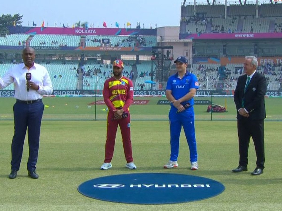 ٹی ٹوئنٹی ورلڈکپ کے سینتیسویں میچ میں اٹلی نے ویسٹ انڈیز کے خلاف ٹاس جیت کر پہلے فیلڈنگ کرنے کا فیصلہ کیا ہے۔