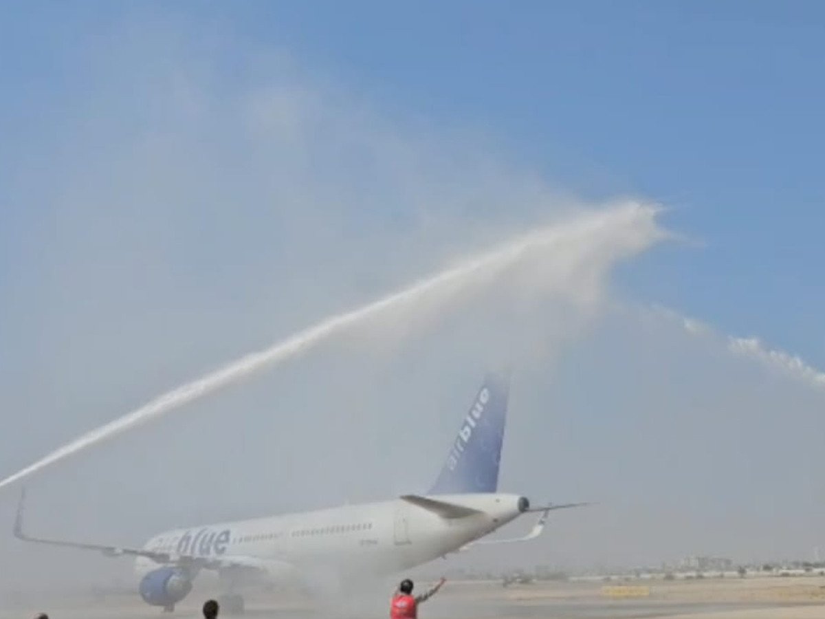 طیارے کی لینڈنگ پر پاکستان ائیرپورٹس اتھارٹی نے واٹرسیلیوٹ دیا۔