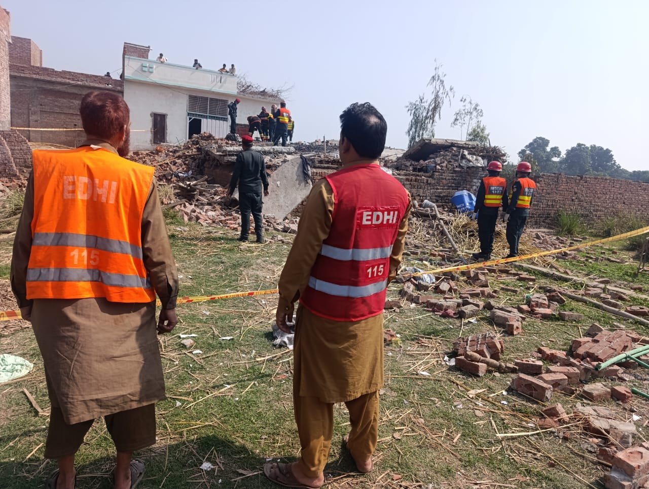 ایدھی رضاکار ملبہ ہٹانے اور متاثرین کو نکالنے میں مصروف ہیں جبکہ زخمیوں کو طبی امداد کی فراہمی کا سلسلہ جاری ہے۔