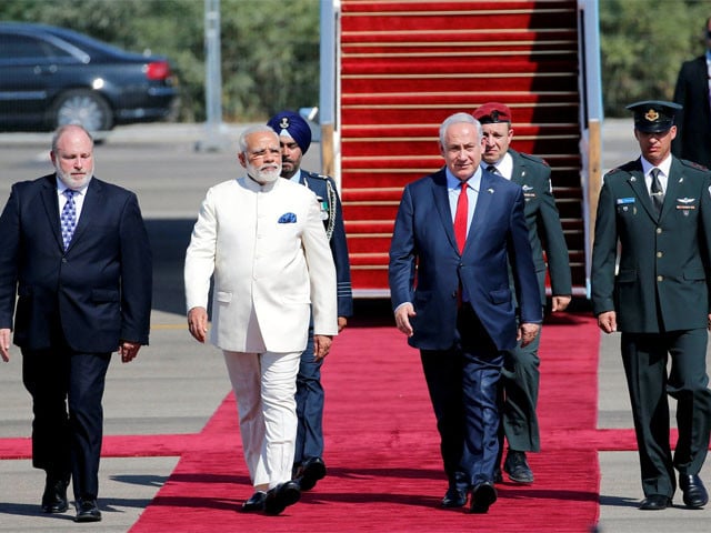 بھارتی وزیراعظم نریندر مودی اپنے دیرینہ دوست نیتن یاہو سے ملنے 2 روزہ سرکاری دورے پر اسرائیل پہنچ گئے۔