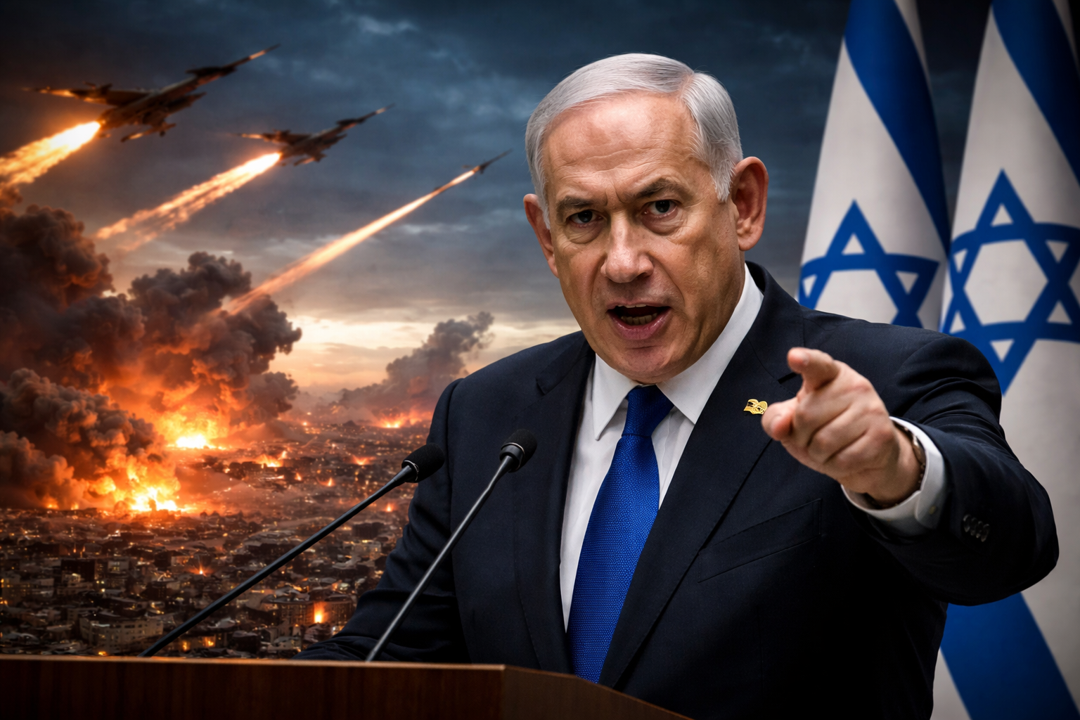 نیتن یاہو نے اس امید کا بھی اظہار کیا کہ ہم ایرانی حکومت کے ہارڈ لائنر کو نشانہ بنا رہے ہیں جس کے نتیجے میں ایران کے عوام کو اپنی حکومت کے خلاف اُٹھ کھڑے ہونے کا موقع ملے گا۔
