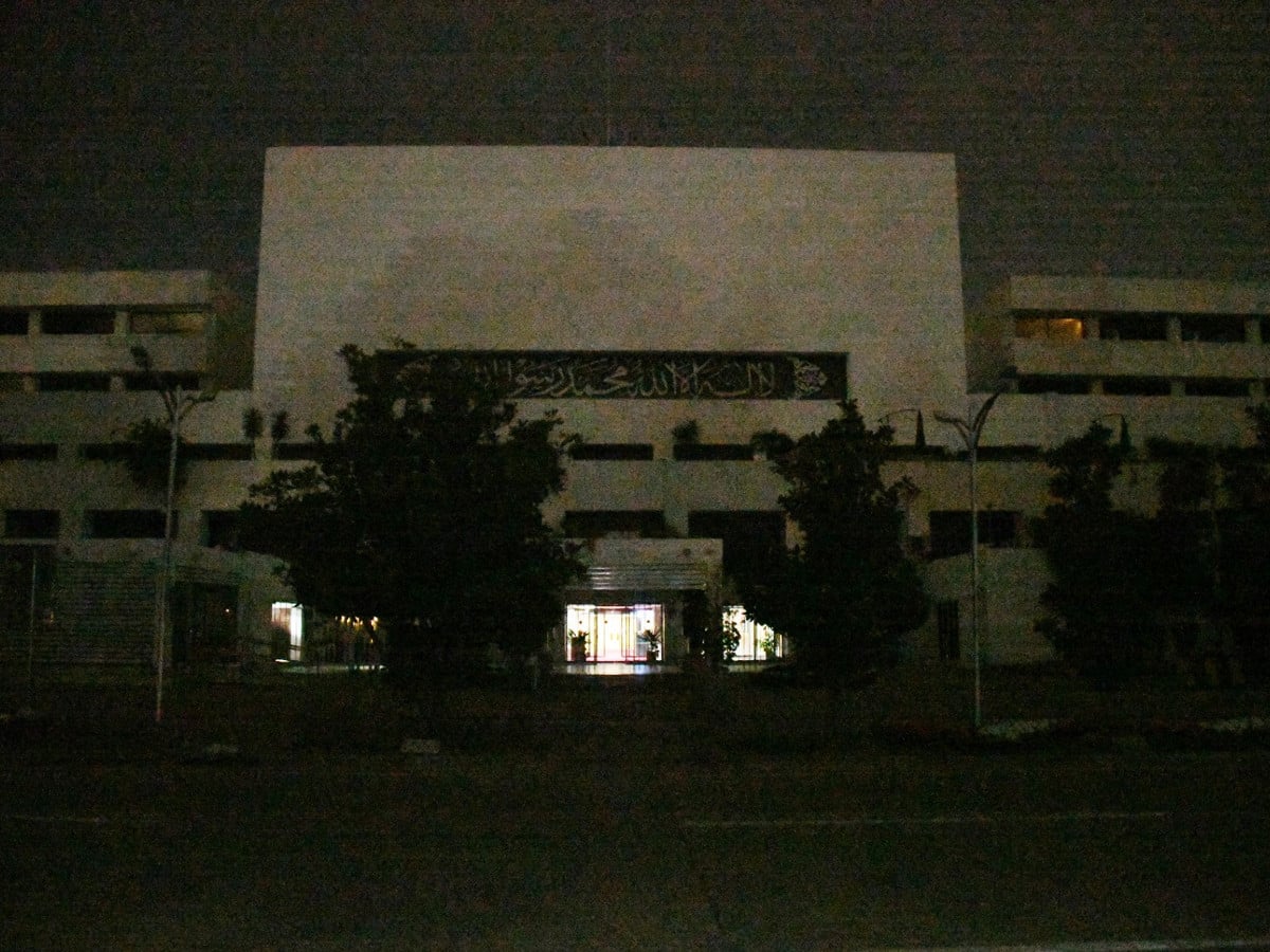 شاہراہ دستور، ریڈزون مکمل اندھیرے میں ڈوب گیا جبکہ تمام سرکاری عمارتوں میں غیرضروری لائٹس بند کی گئیں۔