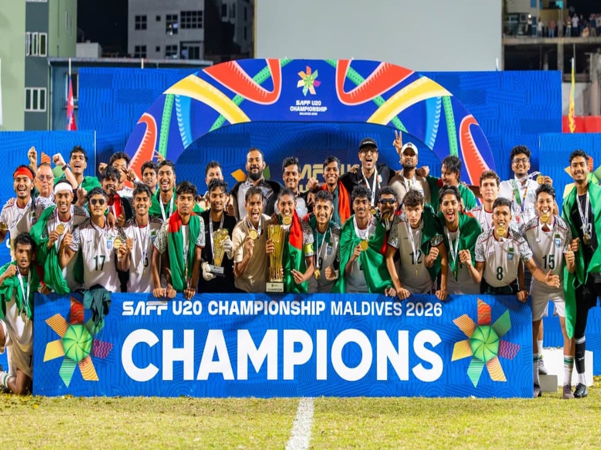 مالدیپ کے شہر مال میں کھیلے گئے ساف انڈر 20 چیمپئن شپ 2026 کے فائنل میں بنگلادیش نے بھارت کو سخت مقابلے کے بعد شکست سے دوچار کیا۔