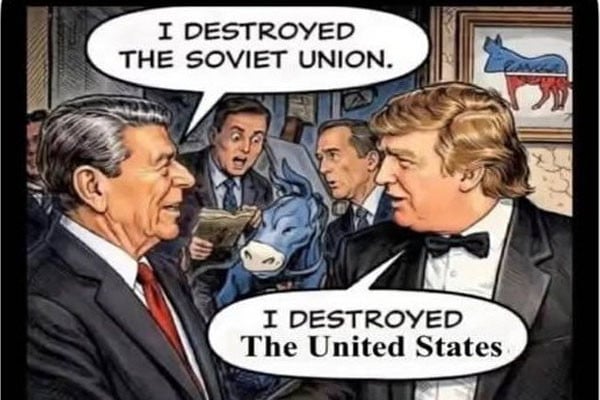 ایک اور پوسٹ میں امریکی صدر کا مذاق اُڑایا گیا جس میں وہ سویت یونین کو تباہ کرنے کے جواب میں کہہ رہے ہیں کہ میں نے امریکا کو تباہ کیا۔