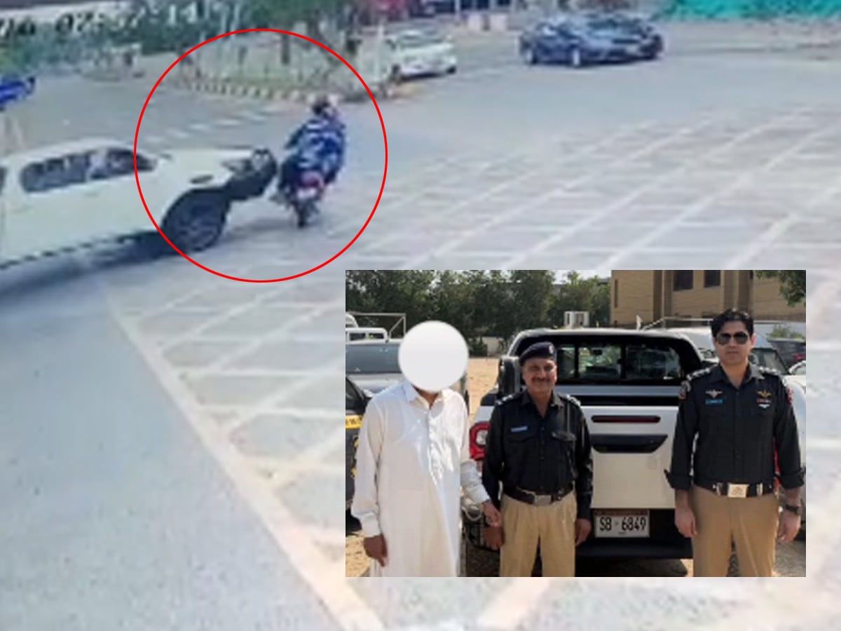 ایس ایس پی نے بتایا کہ تیز رفتار سفید ریوو ڈالا موٹر سائیکل سوار فیملی کو ٹکر مارکر فرار ہوگیا تھا، واقعے کا مقدمہ ضلع جنوبی کے تھانے درخشاں میں درج کیا گیا تھا۔