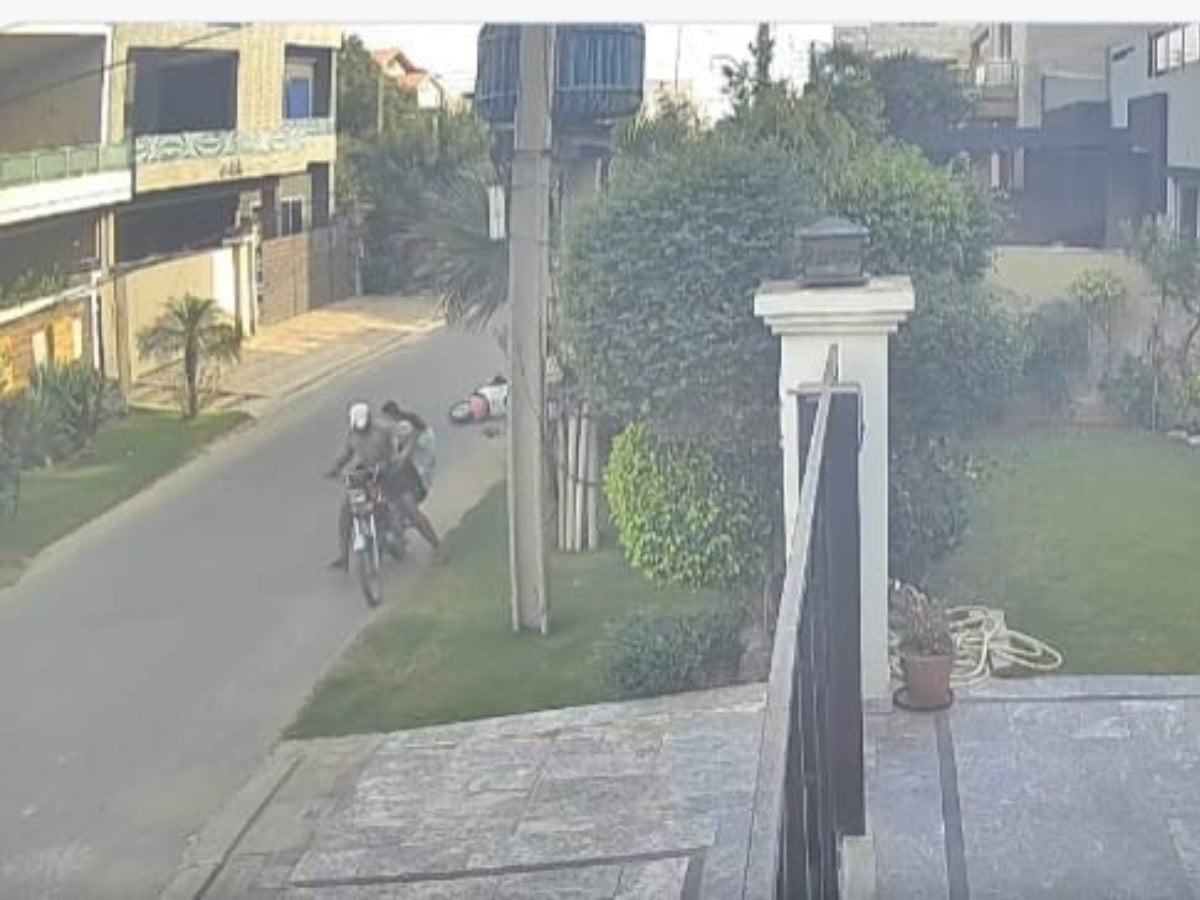 فوٹیج میں دیکھا جا سکتا ہے کہ لڑکی نے مزاحمت کرتے ہوئے ملزم کی موٹرسائیکل کو پیچھے سے پکڑنے کی کوشش کی تاہم اس دوران وہ زمین پر گر گئی۔ ملزم لڑکی سے موبائل فون چھین کر موقع سے فرار ہوگیا۔
