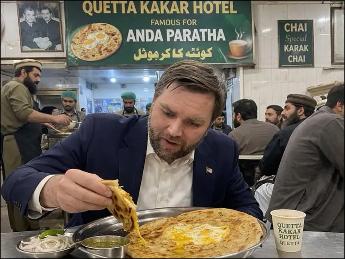 سوشل میڈیا پر وائرل ہونے والی تصاویر میں جے ڈی وینس کو کبھی ہوٹل پر بیٹھے چائے کا پیالہ تھامے دیکھا گیا، تو کہیں وہ روایتی ناشتے ’انڈا پراٹھا‘ سے لطف اندوز ہوتے نظر آئے۔ ایک تصویر میں انہیں ’کوئٹہ ککڑ ہوٹل‘ میں ناشتہ کرتے دکھایا گیا، جس نے صارفین کو خوب محظوظ کیا۔